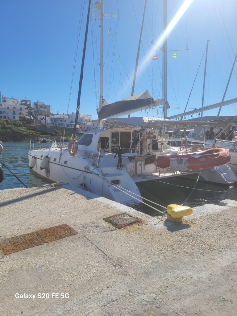 Puis 4 jours de co-navigation avec le seul partage des frais de la caisse de bord pour mettre en pratique la théorie dans des conditions exceptionnelles en Grèce sur mon catamaran.