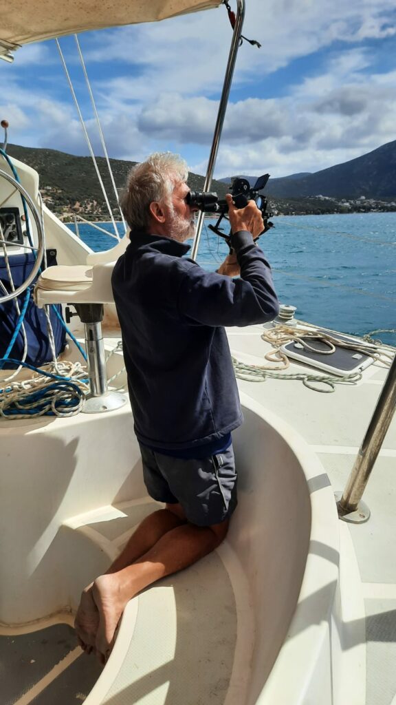Notre but étant de mettre en pratique l’usage du sextant et de faire des calculs pour faire le point, le catamaran est idéal en terme de stabilité et de place dans le carré en mer et au mouillage. Tout en profitant bien sûr des agréments de la Grèce, soleil, baignades dans des eaux cristallines et chaudes et de bonnes tavernas.